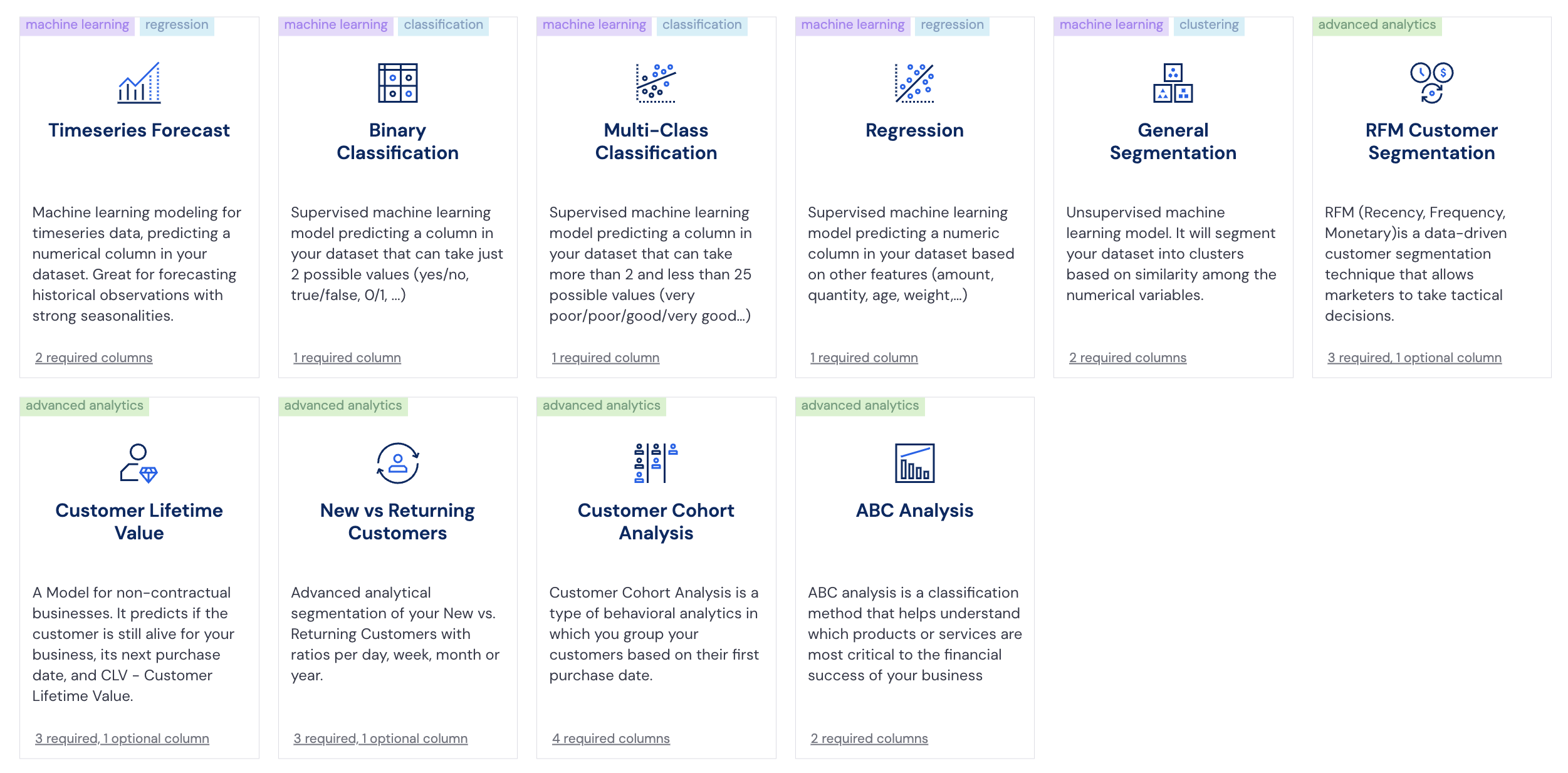 Graphite Note offers a suite of powerful machine learning and advanced analytics models designed to empower businesses to make data-driven decisions efficiently. Each model is tailored to address specific business needs, from forecasting future trends to segmenting customer bases. With these models, users can transform raw data into actionable insights quickly and without the need for complex coding.