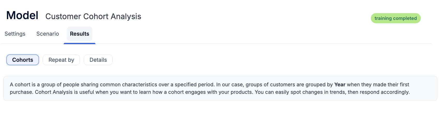 Once you’ve configured the settings, your Customer Cohort model is ready to run.